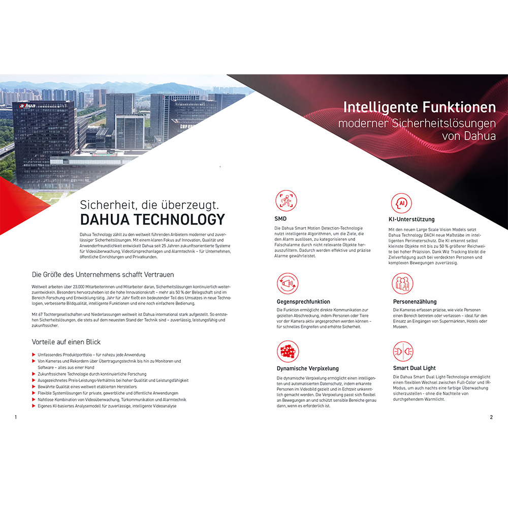 - 12-seitige Endkundenbroschüre: Kompakte und professionelle Übersicht moderner Dahua Videoüberwachung