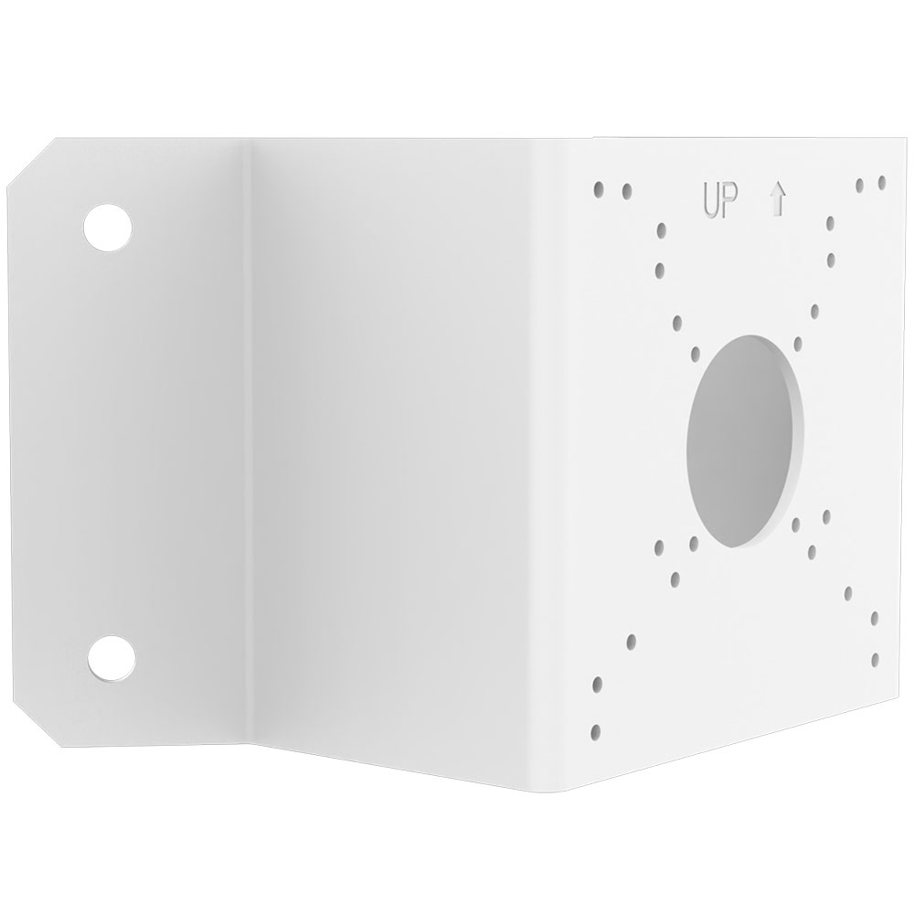 Diese Halterung ermöglicht die stabile Montage von Bullet- und Dome-Kameras an Gebäudeecken – ideal zur Überwachung von zwei Fassaden gleichzeitig.