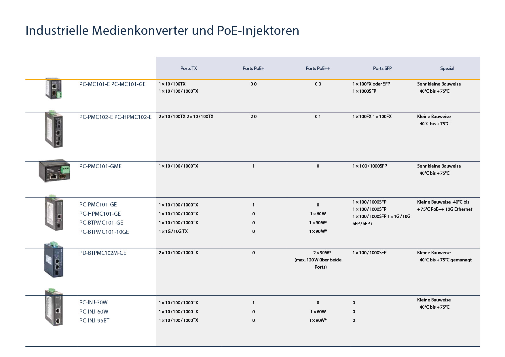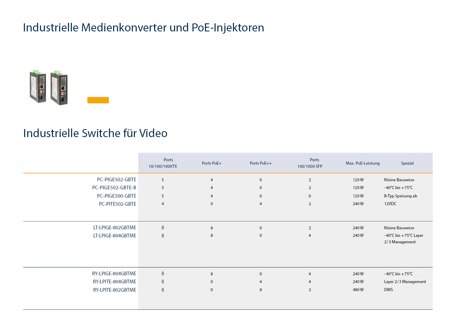- Fokus auf Videoüberwachung: Speziell auf Anwendungen in IP-Videoüberwachungssystemen ausgelegt, inklusive PoE-Switches und industriellen Netzwerkkomponenten.