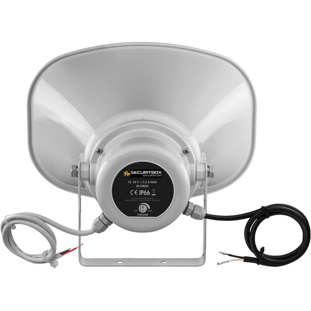 - Kraftvoll & klar: Integrierter 30-W-Verstärker, bis zu 124 dB Schalldruck für Durchsagen und Alarmtöne