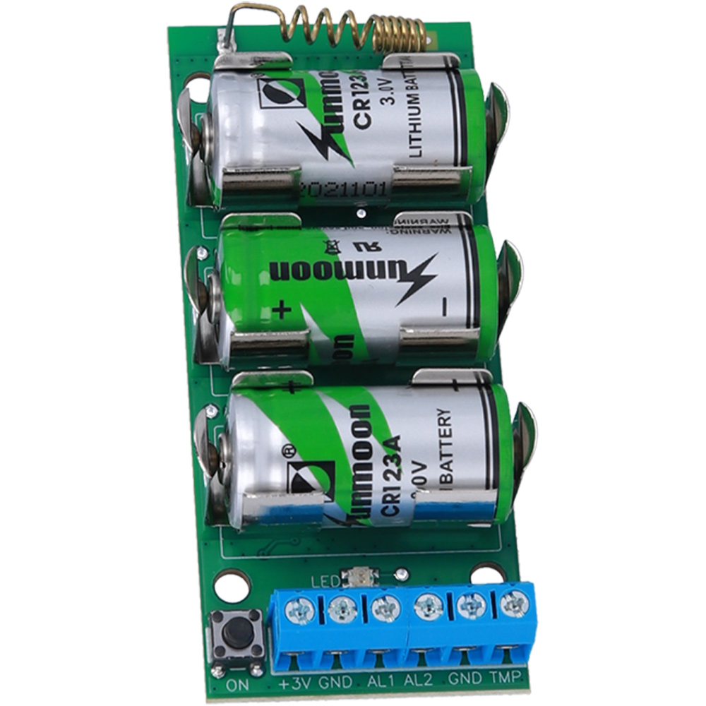 - Unterstützt kabelgebundene Geräte: Drei Eingänge (z. B. für Alarm- und Sabotagesignale) ermöglichen den Anschluss von verdrahteten Detektoren und Sensoren.